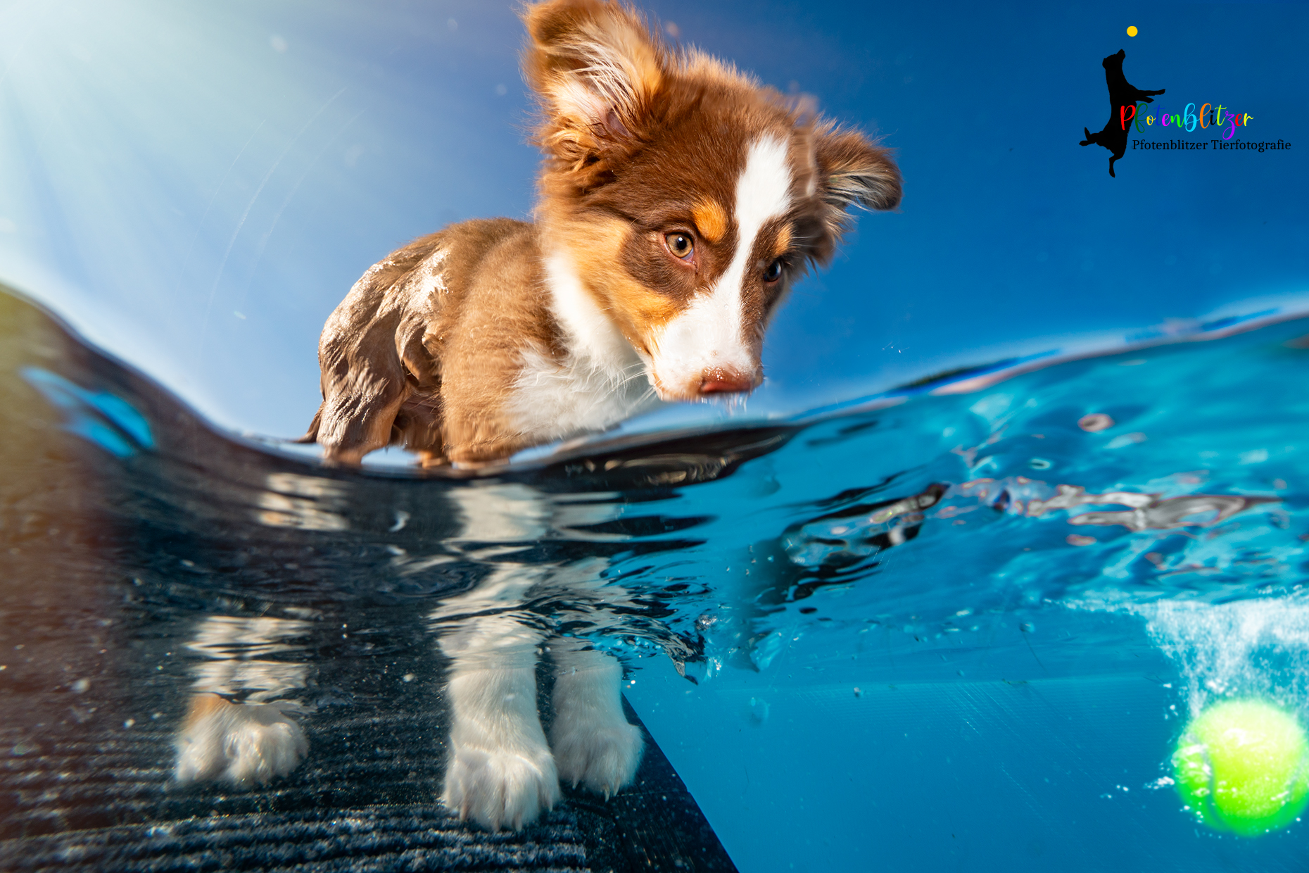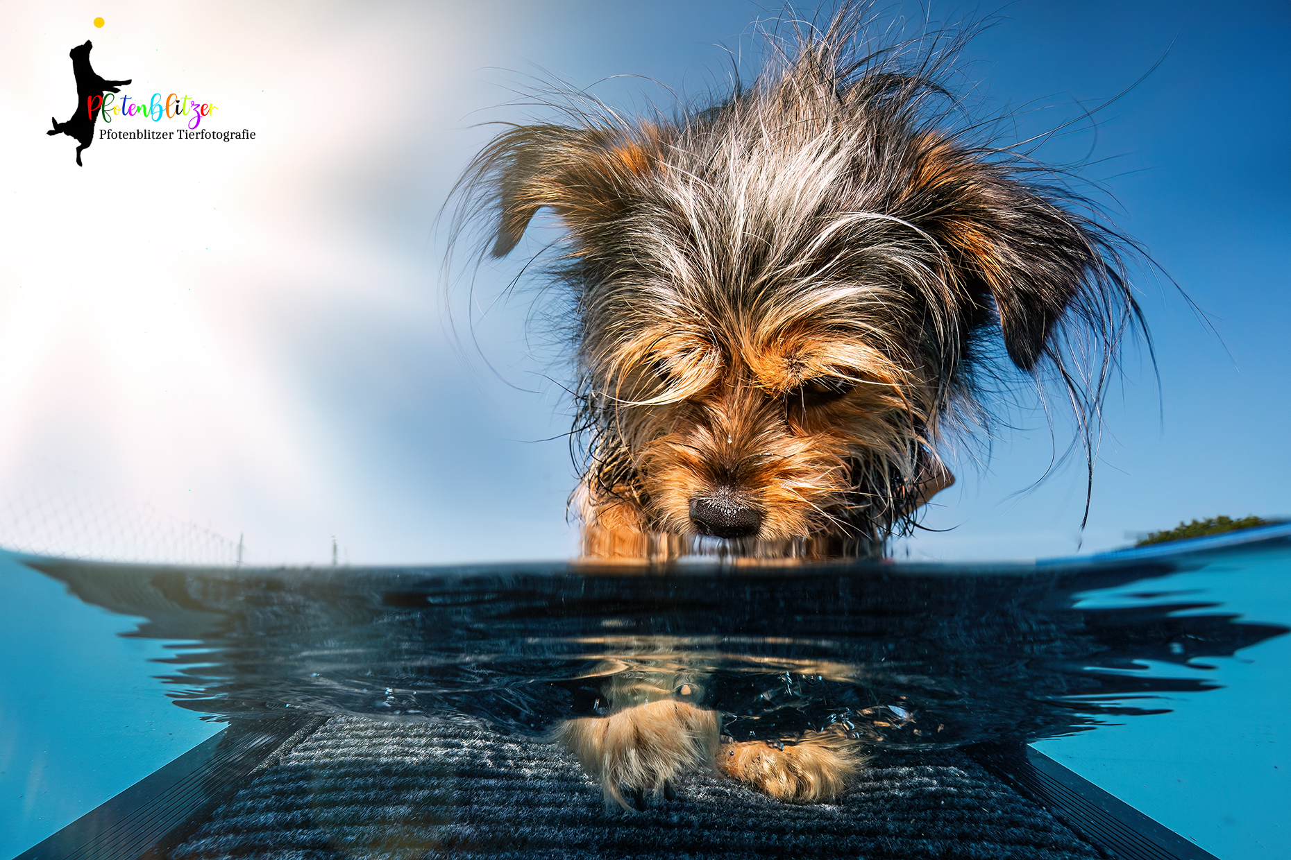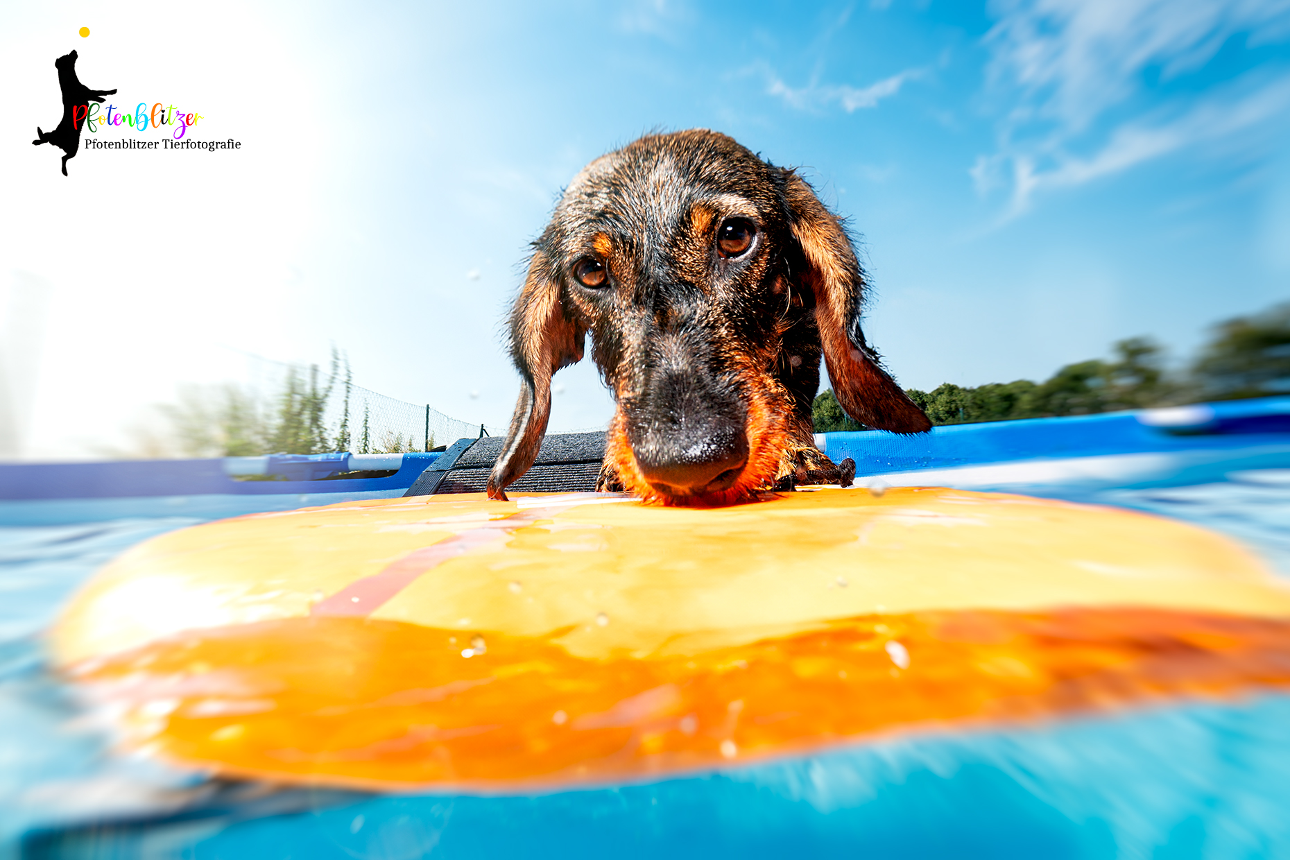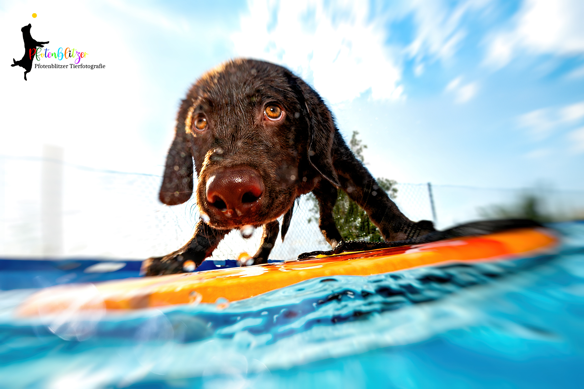 Josie war total gechillt auf dem Board, aber ich fand sie halt auch extrem niedlich auf der Rampe im Wasser und deshalb habe ich mich für den BLOG-Eintrag für dieses Bild entschieden. Die kleine Maus taucht Zuhause sogar schon. Aber nur im Hundepool natürlich und wir hatten an dem Tag zwar extra einen aufgebaut, aber das Wasser hatten wir erst kurz vorher einlaufen lassen und somit war der Hundepool leider noch viel zu kalt (Brunnenwasser).