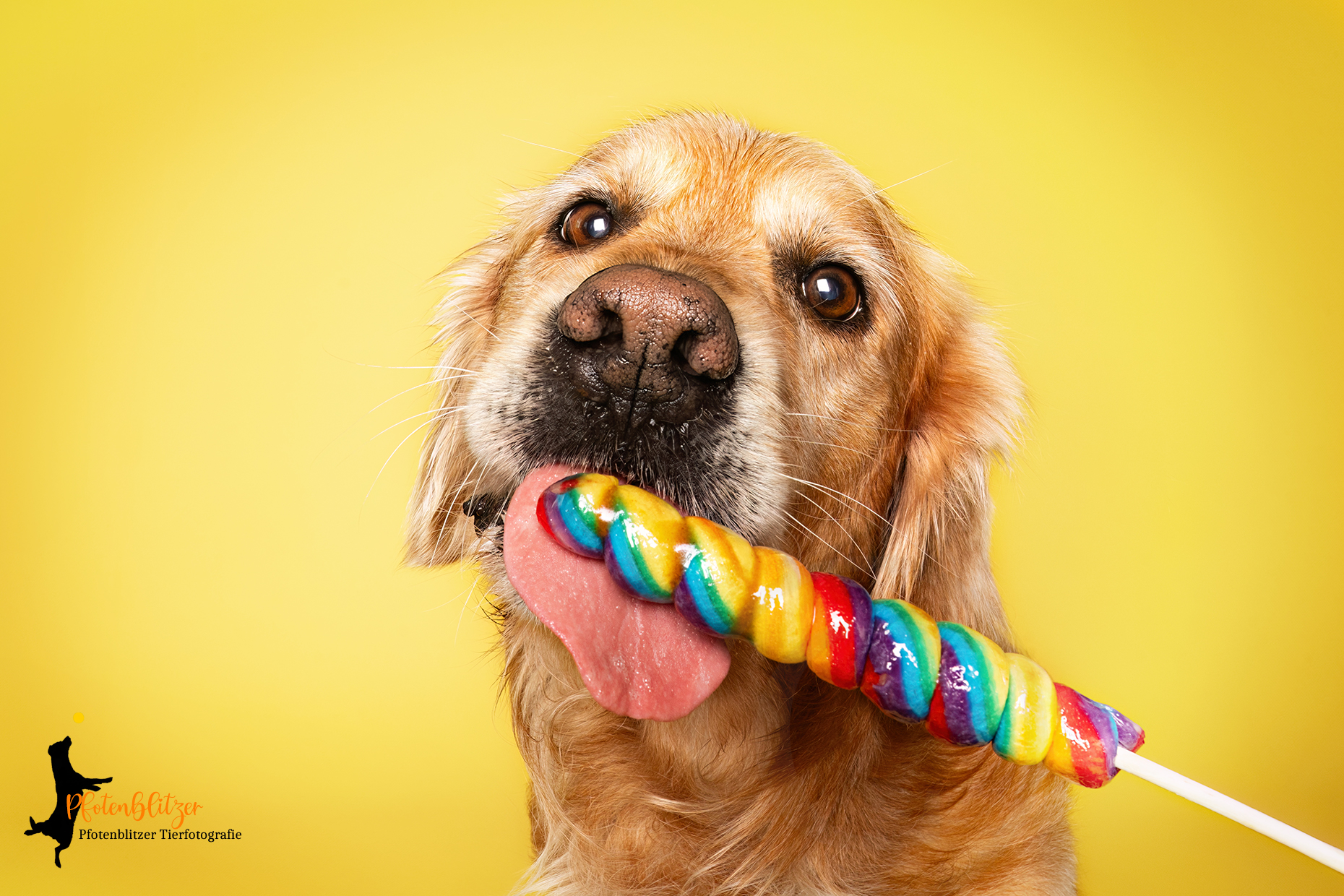 ...mit bunten Lollis und Sahne an lustigen Holzlöffeln. Das macht den vierbeinigen "Leckerbissen" Fans Spaß!