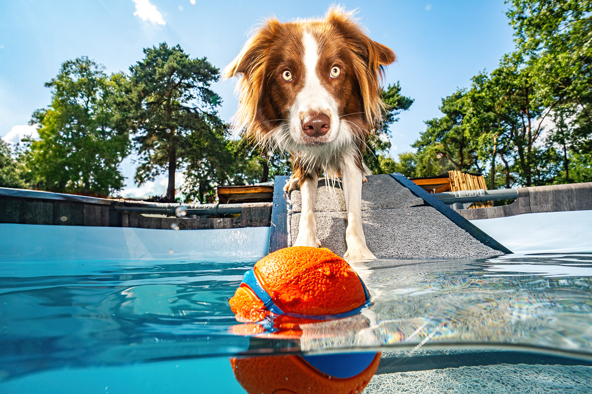Dein Hund kann sich voll und ganz auf unser Spiel im Pool konzentrieren.