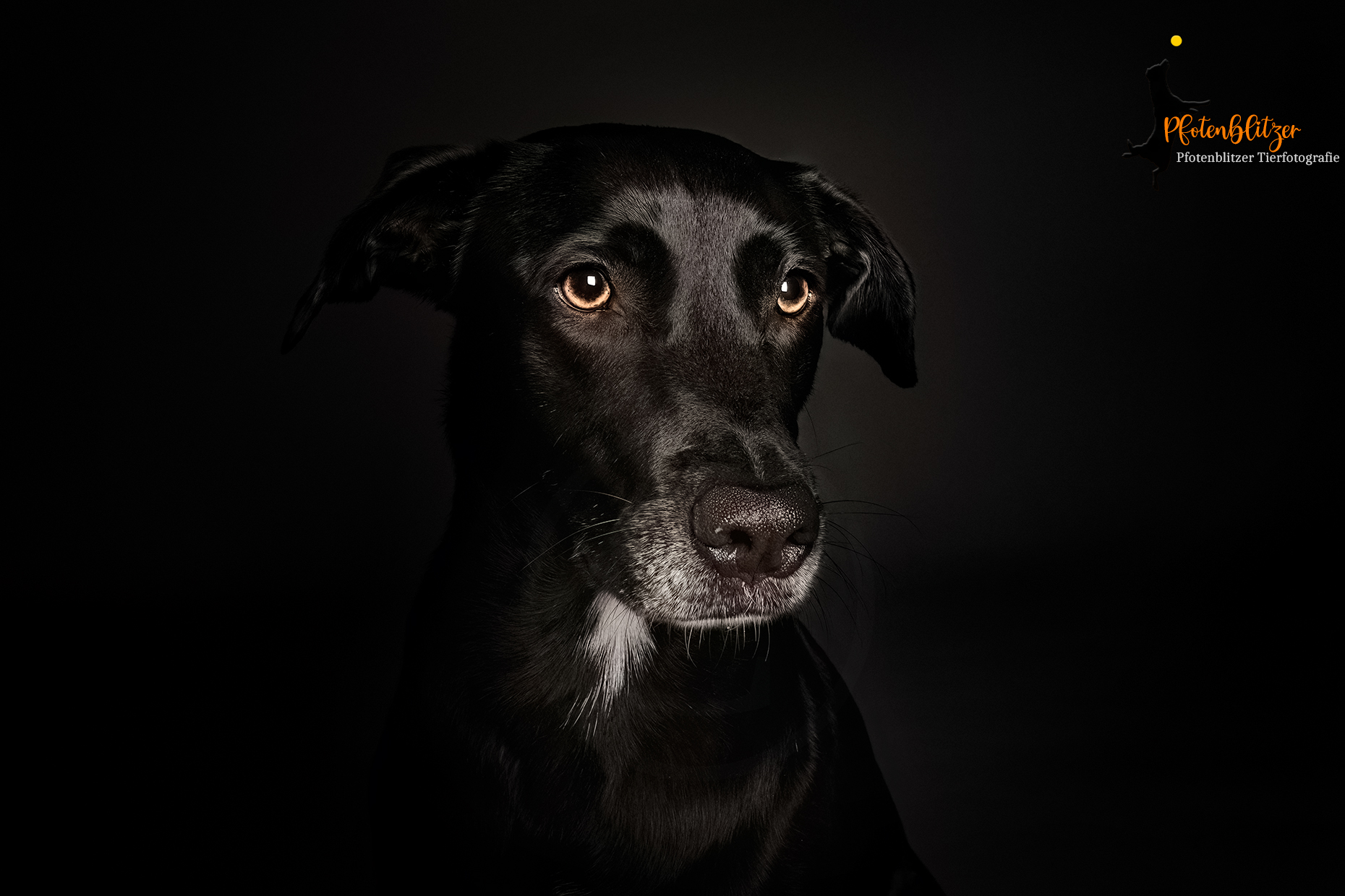 Portraits von Deinem Hund auf schwarzem Hintergrund mit einer Lichtquelle von der Seite. Es entstehen sehr edle Aufnahmen!