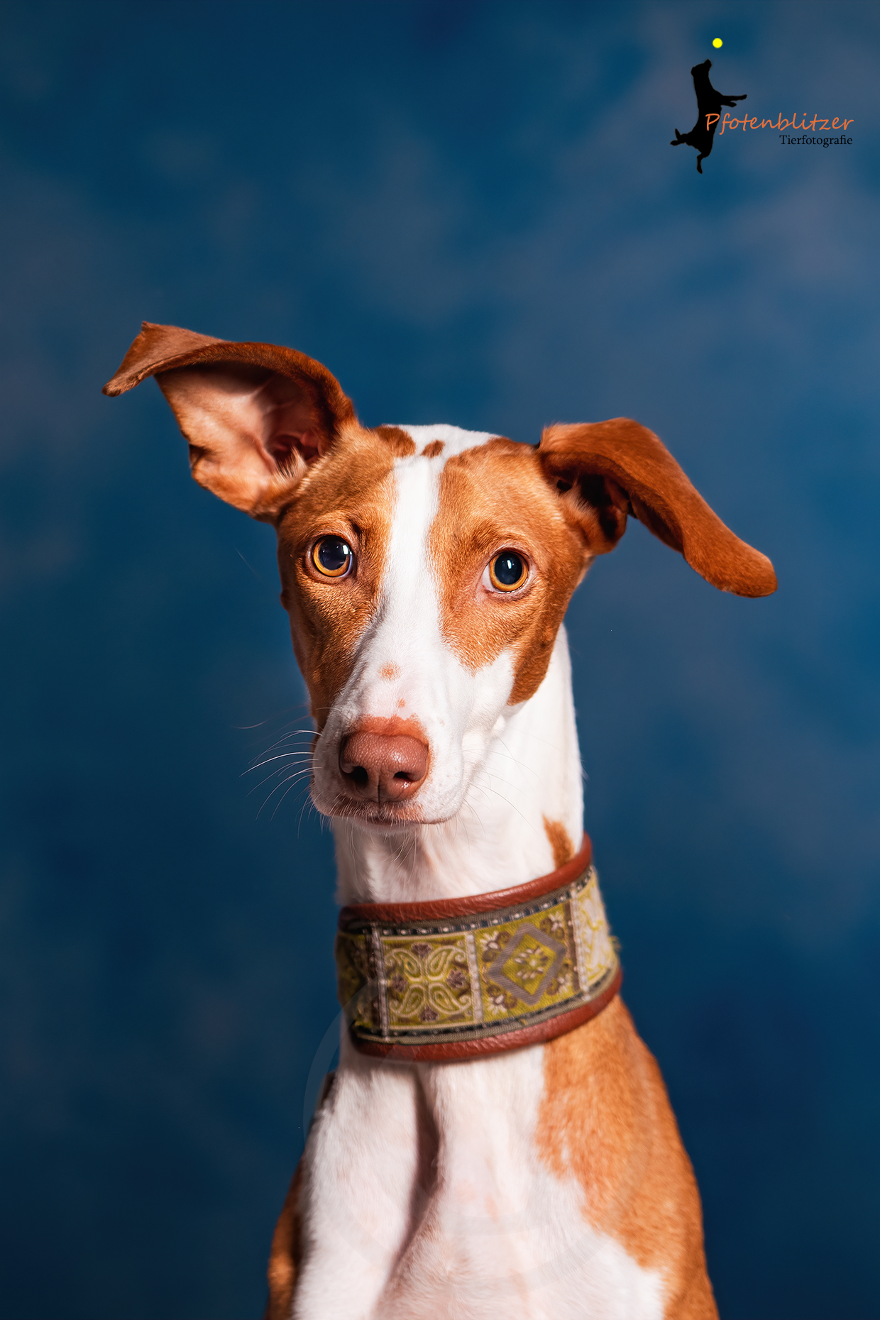 In der Regel sitze ich genau vor Deinem Hund und halte ihm quasi die Kamera vor die Nase, während der Blitz direkt in meinem Rücken steht.