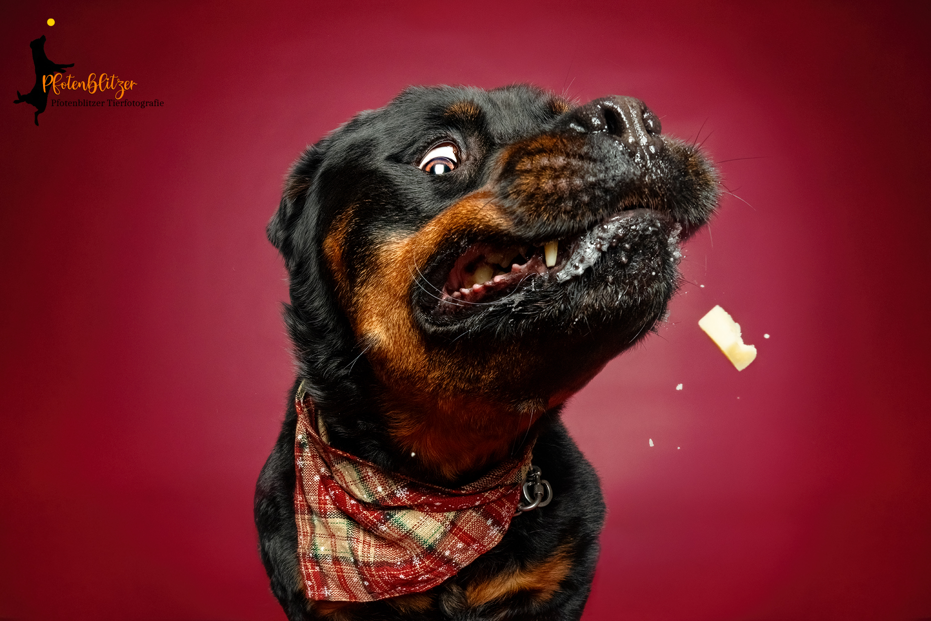 Dein Hund leckt Lachscreme/Leberwurst/Käsecreme/o.ä. von einem Lolli (kein Zuckerersatz-Stoff, sondern ECHTER Zucker) und laktosefreie Sahne (zuckerhaltig) von einem lustigen Holzlöffel. Danach "fliegen" Käsewürfel in seine Richtung (oder halt Leckerchen, die Dein Hund verträgt), um lustige Fangversuch-Bilder zu bekommen.Sollte Dein Hund Unverträglichkeiten haben, kannst Du selbstverständlich auch eigene Sachen mitbringen, die Dein Hund dann fängt oder von Lolli/Holzlöffel lecken kann. Das ist kein Problem :-)