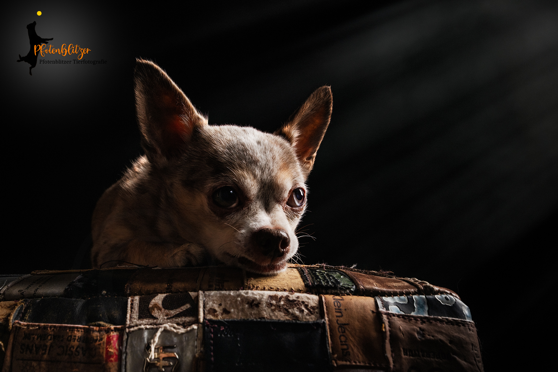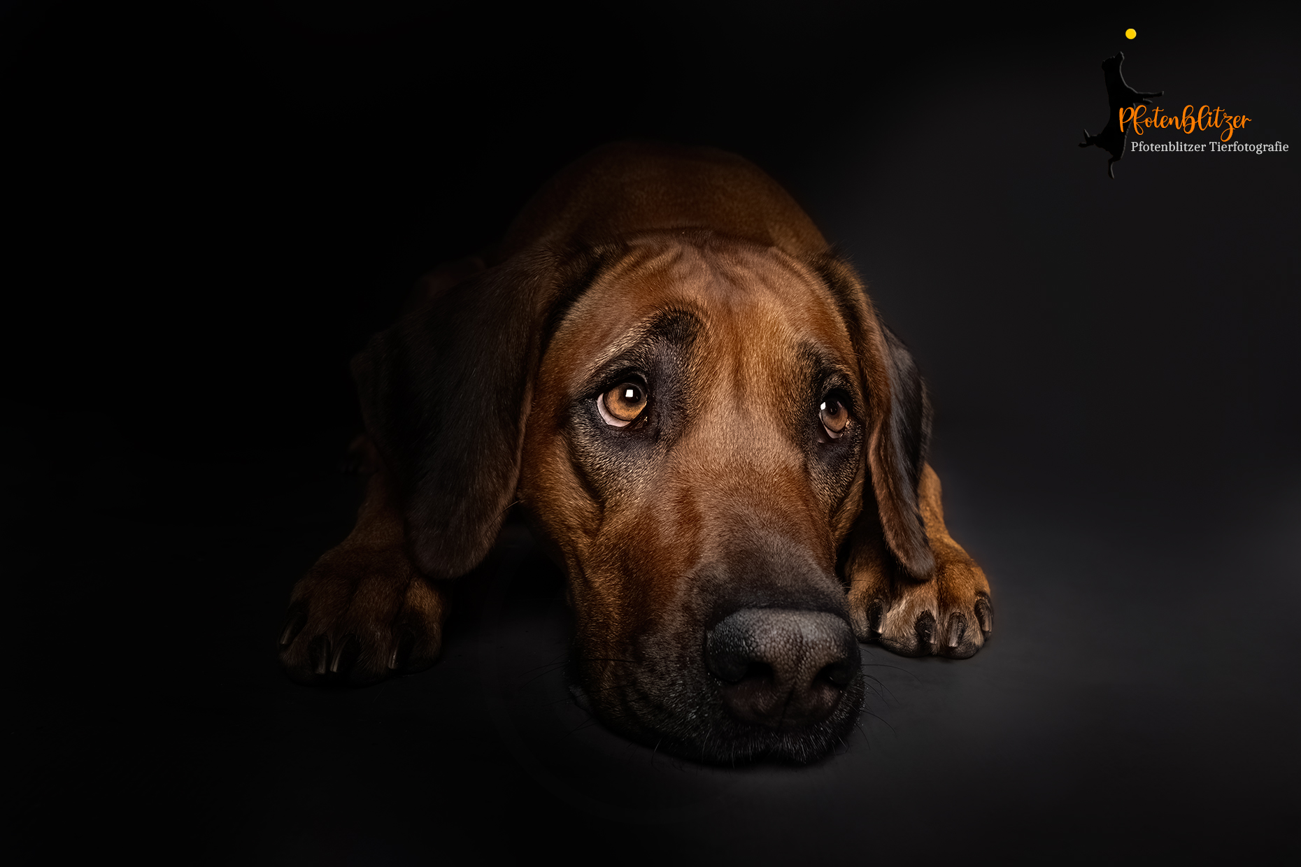 Portraits von Deinem Hund auf schwarzem Hintergrund mit einer Lichtquelle von der Seite. Es entstehen sehr edle Aufnahmen!